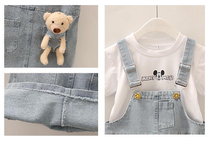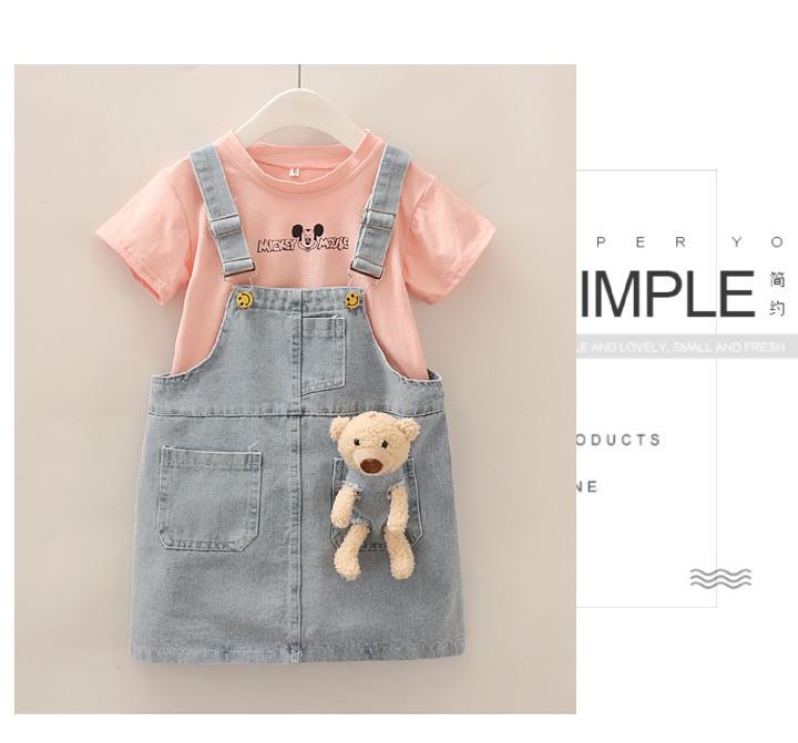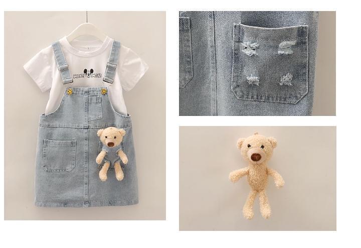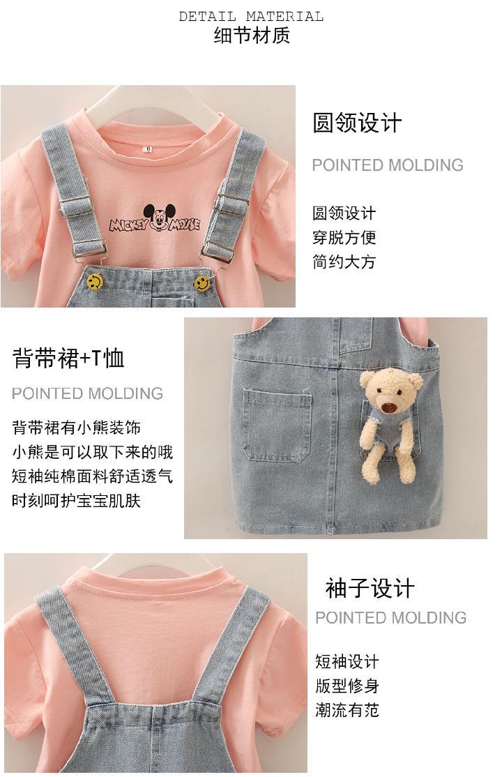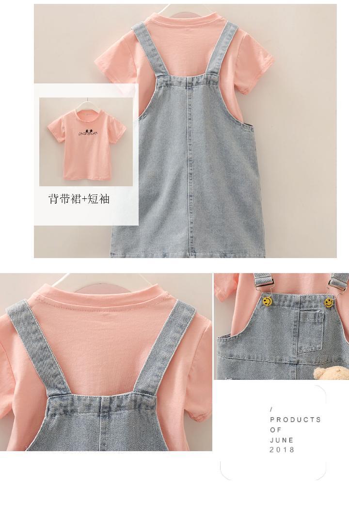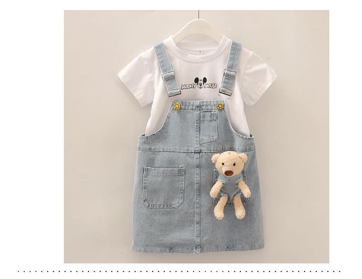 女童背带裙套装2023夏装新款韩版洋气时尚小熊牛仔短袖两件套儿童